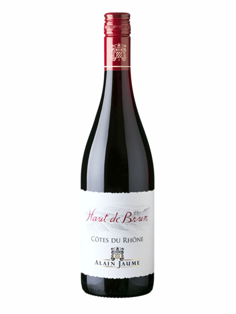Alain Jaume “Haut de Brun” Rouge er en klassisk Côtes du Rhône, lavet på druesorterne; Grenache Noir, Syrah, Cinsault og Mourvèdre, helt efter kunstens regler for Côtes du Rhône vin.
