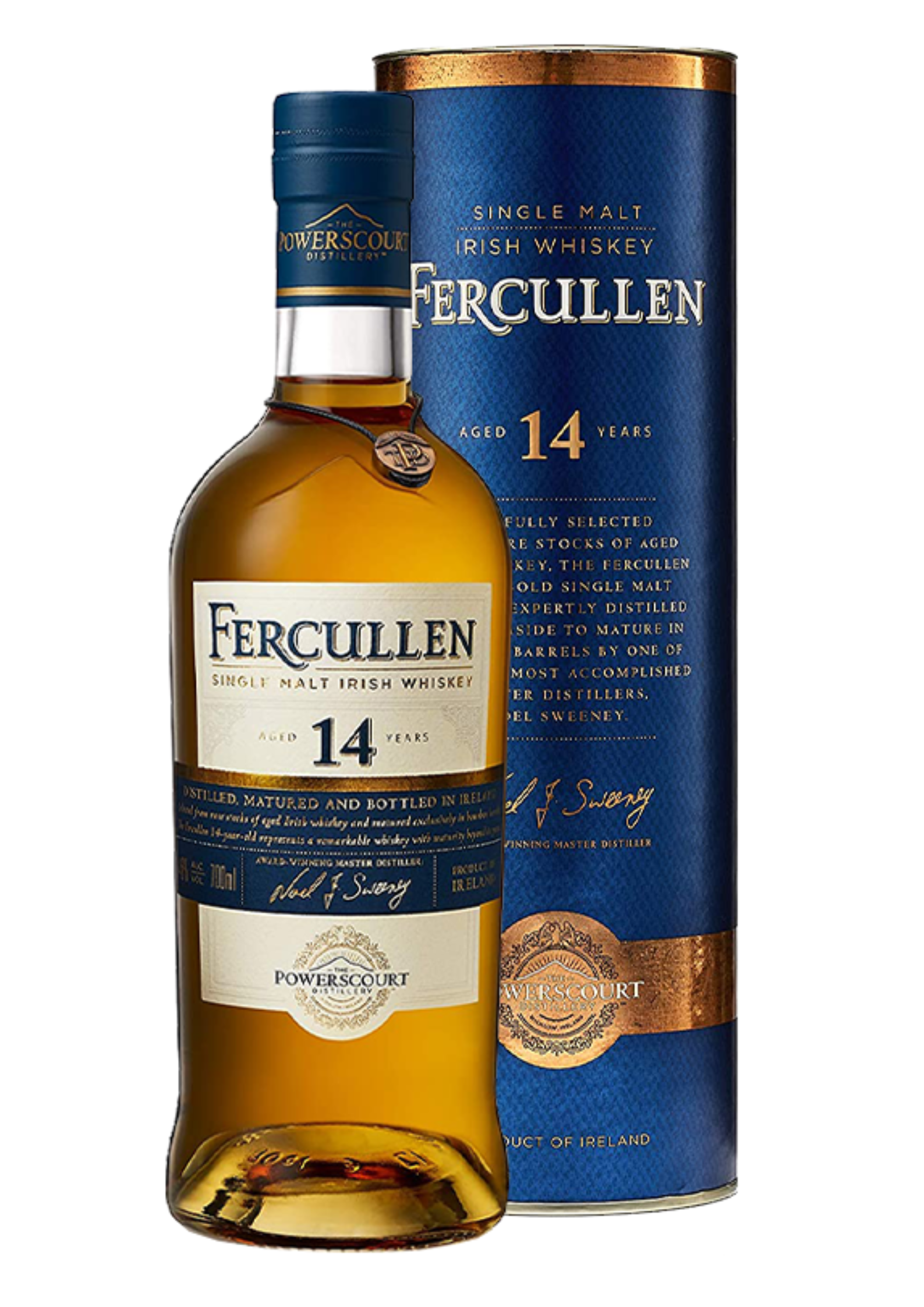 Fercullen 14 Year Old Single Malt Irish Whiskey er fremstillet på sjældne lagre af lagret irsk Single Malt Whiskey, som udelukkende er lagret på nye Bourbon tønder.