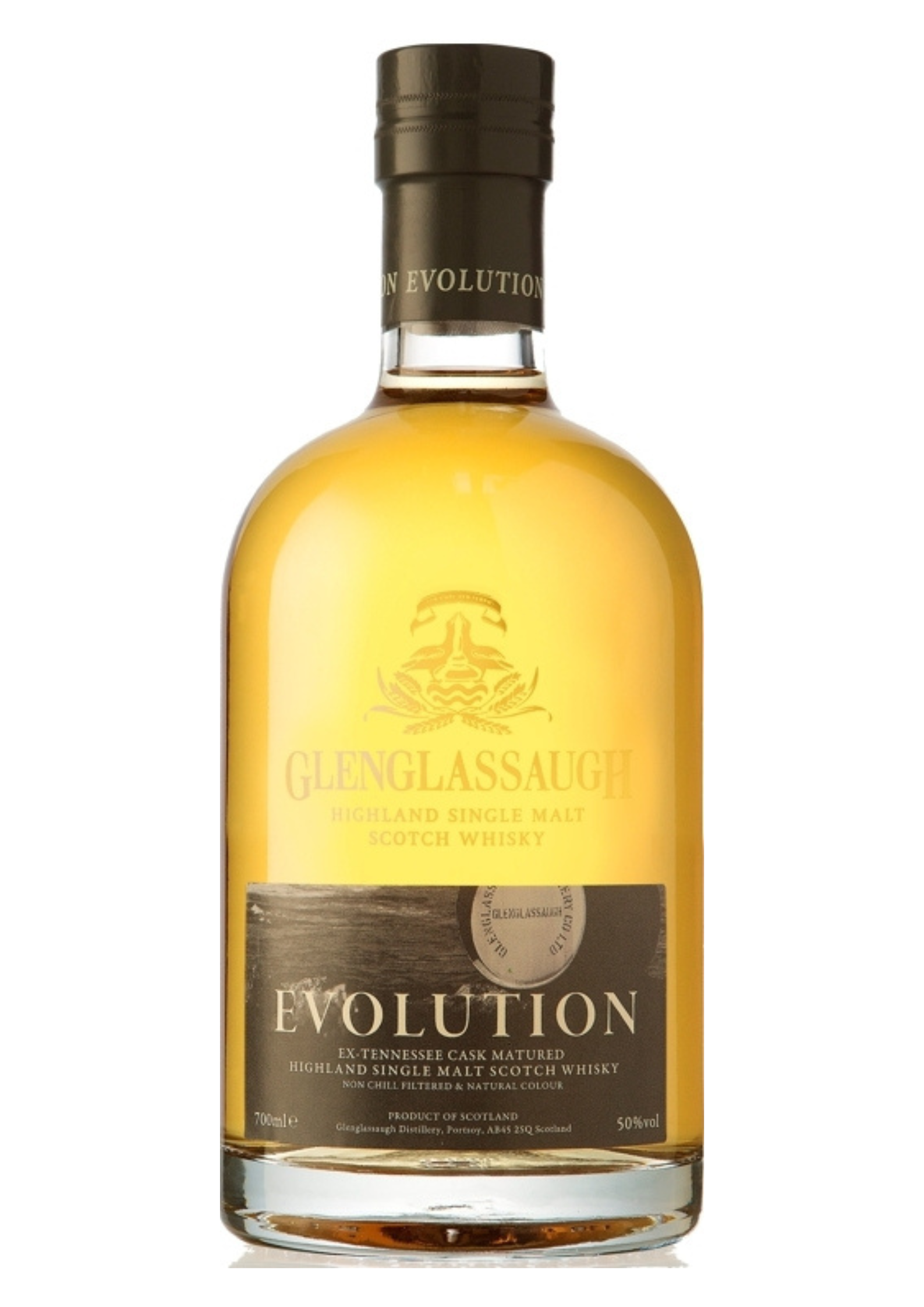 Glenglassaugh “Evolution” er en eksklusiv Highland Single Malt Scotch Whisky, som udelukkende har lagret på tidligere “1st fill” ex-Tennese Whiskyfade, som skaber en dybde og personlighed, der viser en harmonisk kombination af whisky og eg.
